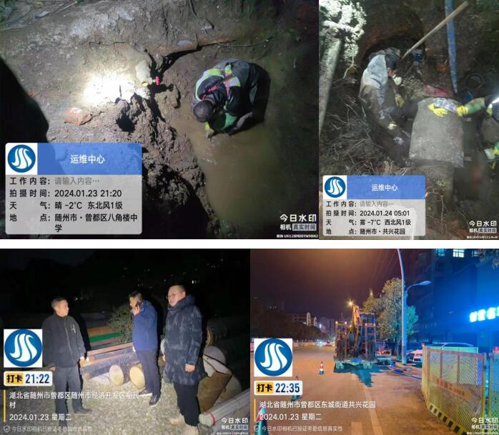 1月23日,有市民反映鐵路片區(qū)下坡處地面有積水,附近有學(xué)校,周邊住戶也較多,對市民出行造成極大安全隱患。測漏人員第一時(shí)間到場勘查,排查后發(fā)現(xiàn)漏點(diǎn)在下坡處拆遷區(qū)內(nèi),工作人員及時(shí)與當(dāng)?shù)厣鐓^(qū)居委會(huì)和相關(guān)部門取得聯(lián)系,經(jīng)過多方協(xié)調(diào),滿足施工條件后,立即組織搶修隊(duì)伍進(jìn)行開挖,在寒風(fēng)凜冽的深夜,搶修人員爭分奪秒,全然顧不上他們已凍得通紅的雙手,只希望以最快速度完成改造作業(yè),最大程度減小停水作業(yè)對居民的影響。當(dāng)晚21點(diǎn)25分歷時(shí)3小時(shí)將DN100管道漏水點(diǎn)搶修完畢,保障了極寒天氣下周邊居民、學(xué)生出行的安全。