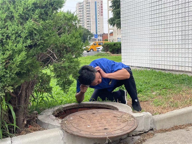 經現(xiàn)場查看,測漏人員只能對已知閥門、雨水井逐一進行排查。只見他們掀開井蓋,將聽音桿的底部抵在閥門井里的管道上,側耳俯身,持續(xù)傾聽有沒有刺耳的漏水聲音,在炎熱的天氣下專心聽漏,經過認真細致劃分區(qū)域節(jié)點,反復地聽音、定點,當排查至水表井附近時,看到水表井里的積水當即安排抽水,工作人員彎身爬到水表井下深入細聽,最終在DN300水泥管找到漏點,定好位做出標記,立即安排搶修人員組織搶修,經過挖掘、清理、焊接、維修、通水。城市供水公司持續(xù)開展“免費聽漏測漏”活動,堅持問題導向,立足企業(yè)需求,全心全意解企憂、解企難,幫助有需要的企業(yè)用戶查找漏點,便于及時堵漏,節(jié)約水資源。
