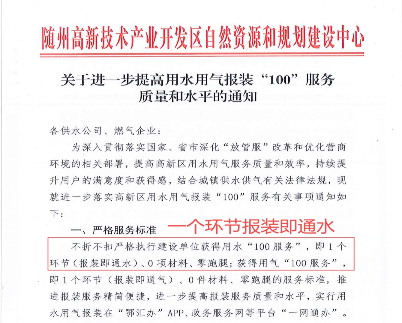 1.關(guān)于進(jìn)一步提高用水用氣報(bào)裝“100”服務(wù)質(zhì)量和水平的通知