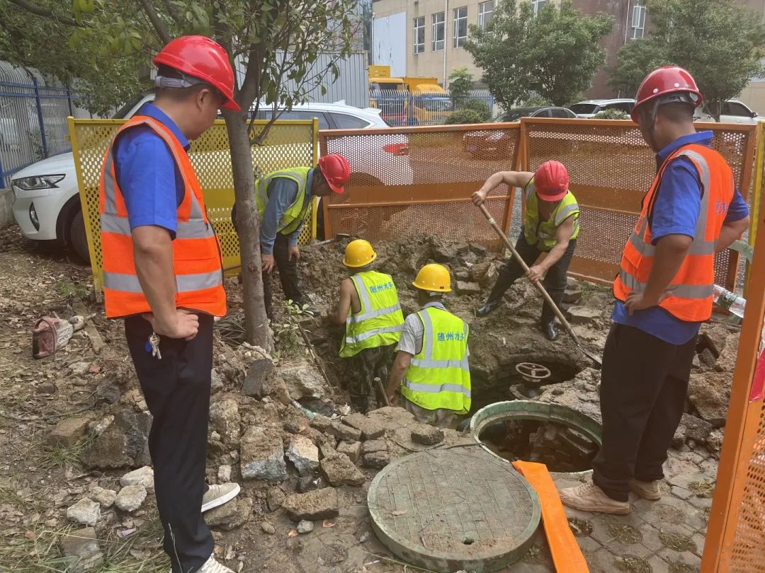 7月6日上午,客服人員接到群眾的熱線電話,清河路清河庭院附近路面大量跑水,運(yùn)維中心搶修人員十五分鐘到達(dá)現(xiàn)場(chǎng),通過路面積水判斷為DN400主管道爆破,測(cè)漏人員立即精準(zhǔn)定位漏點(diǎn),關(guān)閉次處的管道會(huì)直接影響周邊黃龍五隊(duì)、清河庭院、東方小區(qū)、楚苑小區(qū)、雙橋家具大市場(chǎng)等,導(dǎo)致小區(qū)和企業(yè)大面積的水壓不足甚至停水??崾铍y耐,為減少管網(wǎng)爆裂等突發(fā)事件給居民帶來的用水影響,維修人員在35°的高溫下連續(xù)奮戰(zhàn)8小時(shí),當(dāng)晚7點(diǎn)半就完成維修恢復(fù)正常供水。