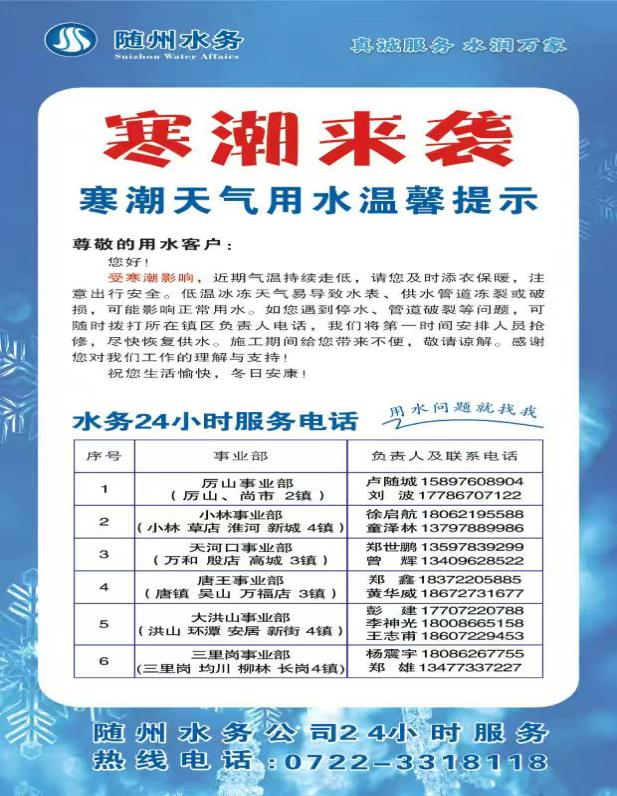 您的位置:首頁 > 集團新聞> 天冷不凍水,隨州水務守護你用水無憂!
